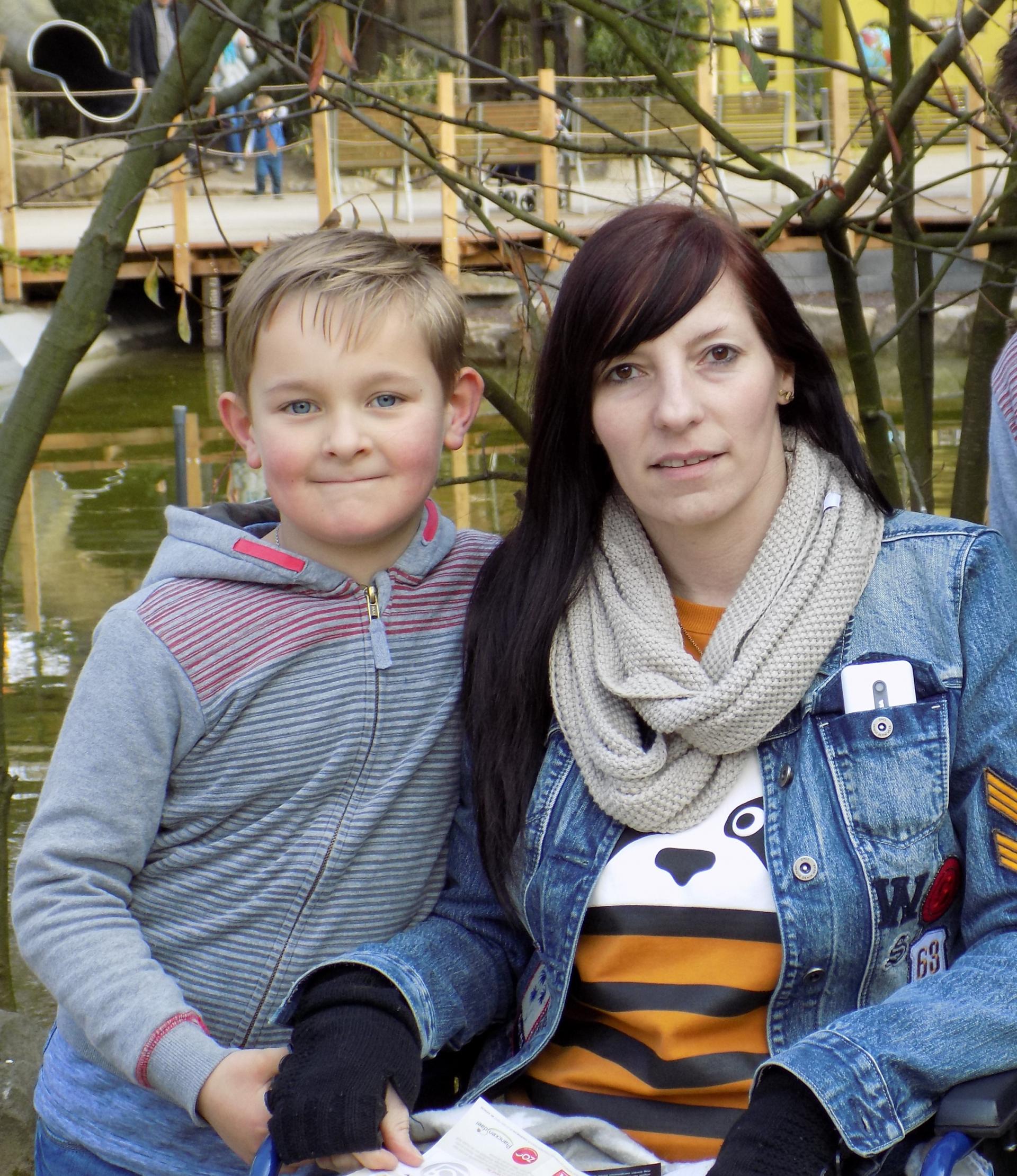 Mijn jongste zoon (hier 6 jaar) en ik in de rolstoel.