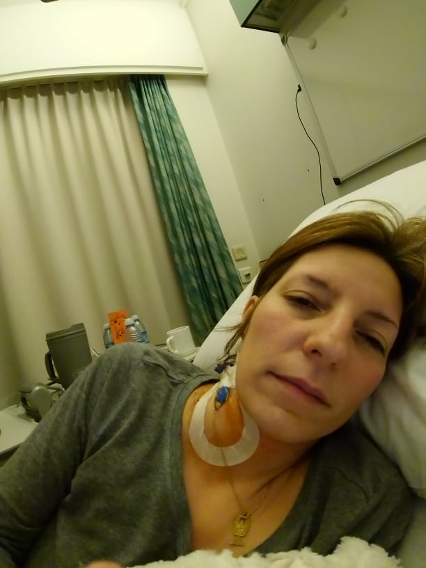 Tijdens de derde maand van de zwangerschap echter kreeg ik de zeldzame ziekte Myasthenia Gravis. Een auto-immuunziekte met ernstige spierzwakte tot gevolg. Het was het ergste aan mijn ademhalingsspieren. Ook eten en drinken was heel moeilijk, enkel slappe papjes konden maar zelfs dat ging heel moeilijk.